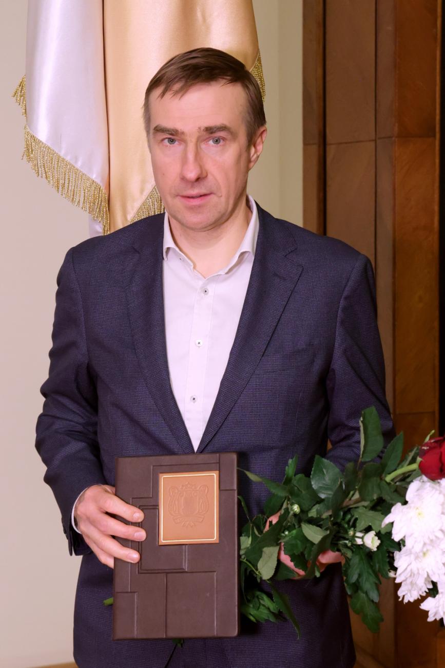 Asoc. prof. Reinis Vilšķērsts ar saņemto LZA īstenā locekļa diplomu Autors: LZA