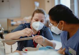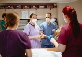 Medicīnas izglītības tehnoloģiju centrā iekārtotā simulētā slimnīcaDarbiniekiem