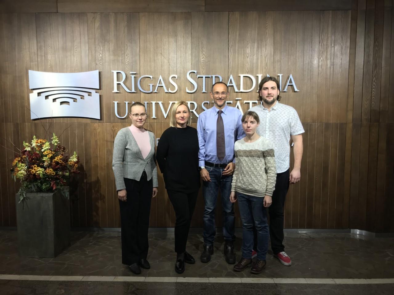 Profesors Mario Džordži kopā ar asoc. profesori, Farmācijas fakultātes dekāni Baibu Mauriņu, asoc. profesori, Farmācijas ķīmijas katedras vadītāju Daci Banderi, Farmakoloģijas katedras paniedzēju Andreju Šitovu un Farmakoloģijas pulciņa vadītāju Margarit