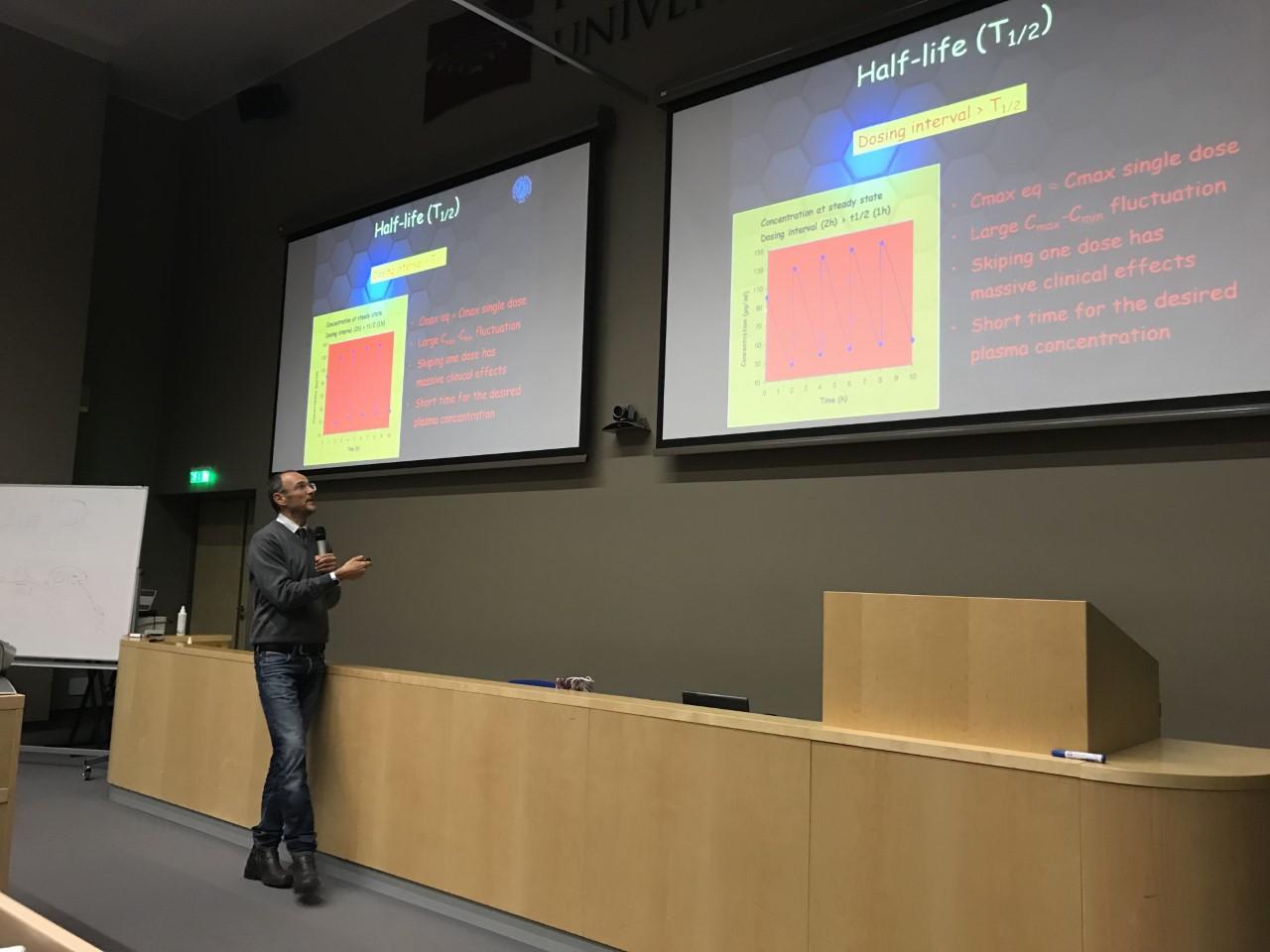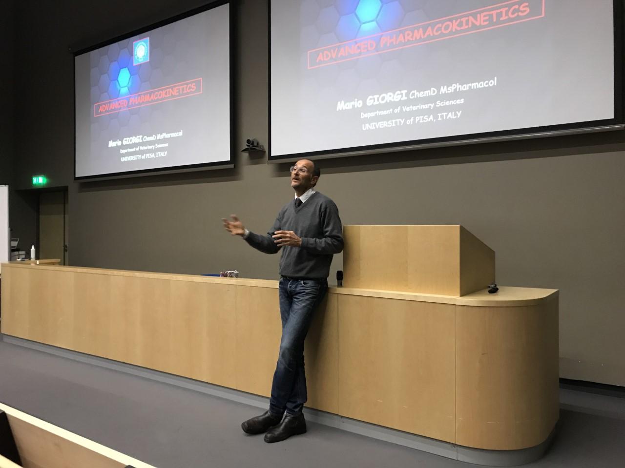 Pizas Universitātes asociētais profesors, ievērojams speciālists farmakokinētikas jomā Mario Džordži sniedz lekciju RSU Farmakoloģijas katedrā 2018. gada 1. un 2. novembrī.