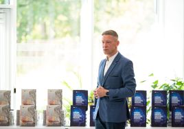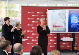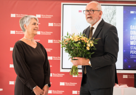 RSU rektors prof. Aigars Pētersons sveic grāmatas "Garīguma dimensiju daudzveidība mūsdienās" zinātnisko redaktori prof. Kristīni Mārtinsoni