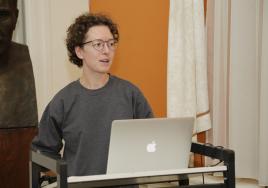 Kamerizstādes "Ādas" atklāšana (attēlā: māksliniece Ausma Šmite)Izstādes