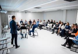 Jauno docētāju skolas dalībnieki noslēguma pasākuma laikāDarbiniekiem