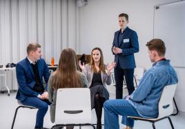 Jauno docētāju skolas dalībnieki noslēguma pasākuma laikā