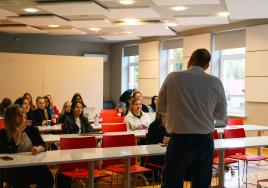 Studenti un vieslektori piedalās darbnīcā "Mākslīgā intelekta spēks kā tavs studiju līdzpilots"