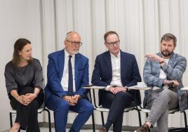 No kreisās: Inita Juhņēviča, Sandis Ozoliņš, Roberts Pļāvējs un Kaspars Gorkšs