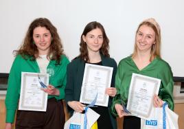 Olimpiādē uzvarētāju komanda: Karolis Petrulis, Anete Palma (centrā), Linda Medjankina Autors: Jānis Brencis