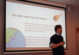 Kaspars Bērziņš darbsemināra laikā RSU Senāta zālē