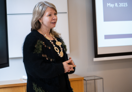Inta Mieriņa darbsemināra laikā RSU Senāta zālē