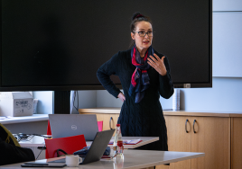 Jūlija Melkers darbsemināra laikā RSU Senāta zālē
