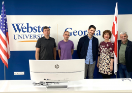 Webster University filiāles apmeklējuma laikā kopā ar kolēģiem no Gruzijas.