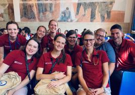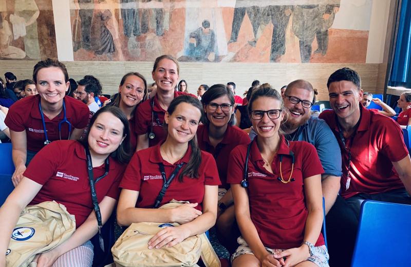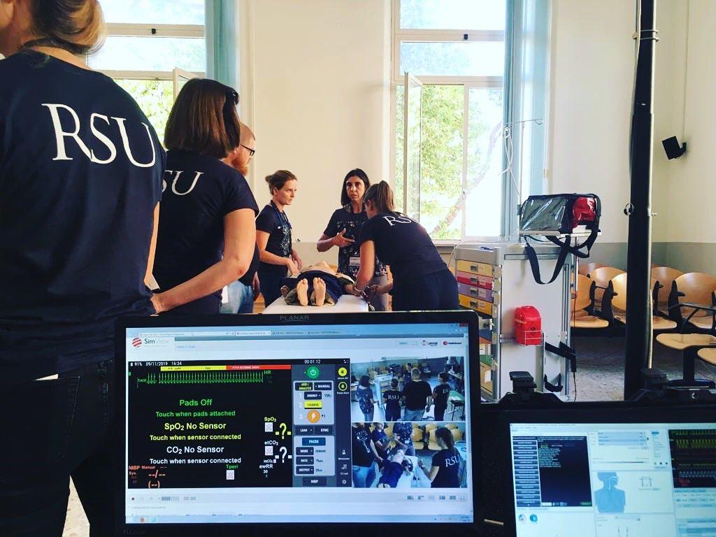 Rīgas Stradiņa universitātes rezidentu komanda augstskolas docētāja un bērnu intensīvās terapijas ārsta Reiņa Balmaka vadībā Trešajās Pediatrijas simulācijas spēlēs Itālijā 2019. gada septembrī.