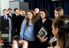 Baltkrievijas opozīcijas līdere Svjatlana Cihanouska vieslekcijā RSU uzsvēra jaunatnes nozīmi demokrātiskās pārmaiņās