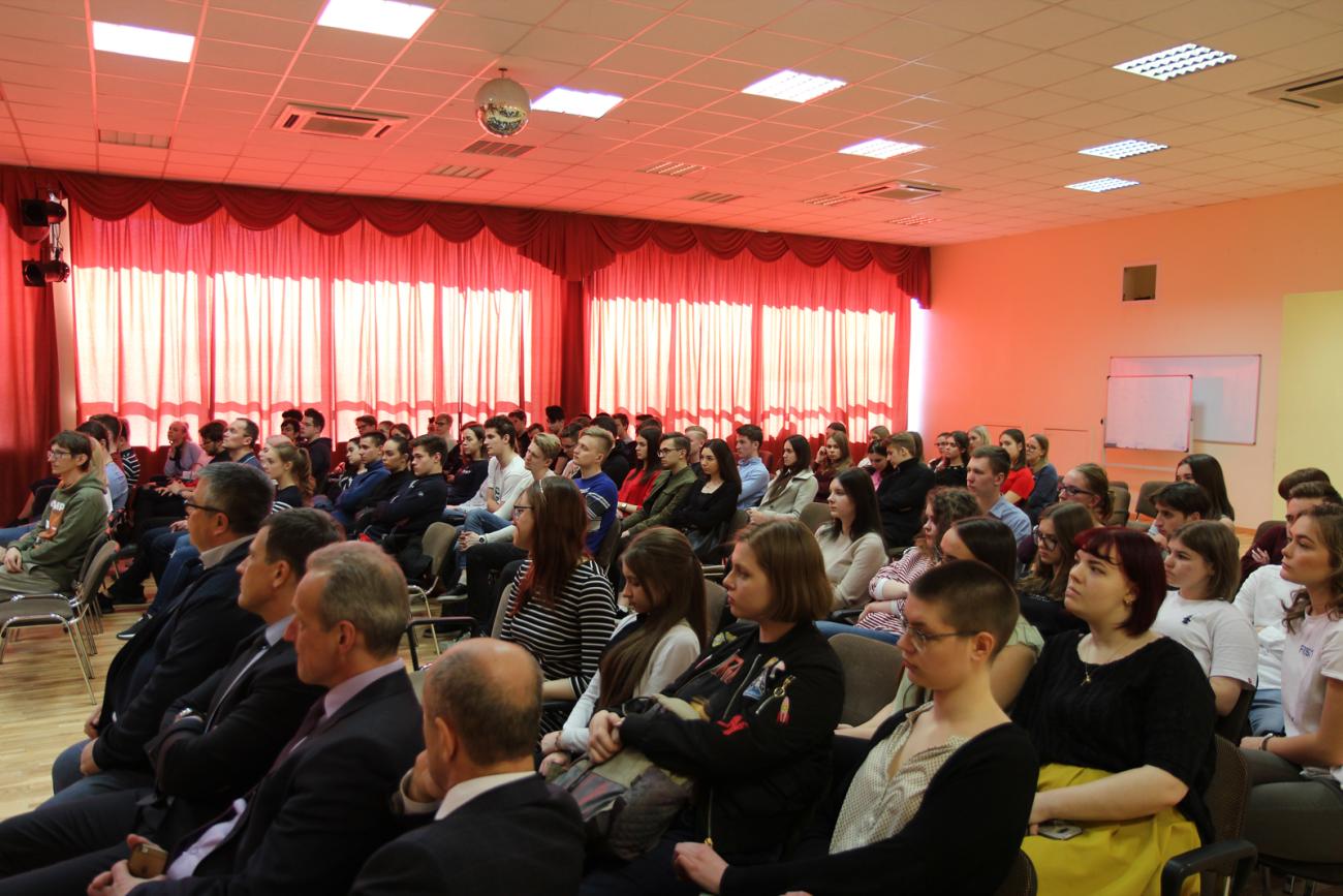 Rīgas Klasiskās ģimnāzijas audzēkņi tikšanās laikā ar RSU rektoru prof. Aigaru Pētersonu