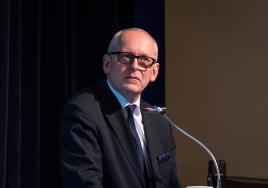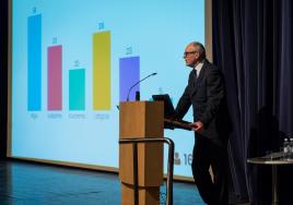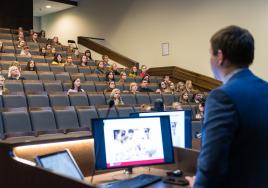 Atvērto durvju diena RSU. Attēlā: rektors prof. Aigars Pētersons