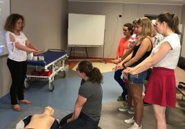 Lai iepazīstinātu vidusskolēnus ar pirmās palīdzības iemaņām, RSU Anestezioloģijas un reanimatoloģijas studentu zinātniskais pulciņš 26. maijā RSU Medicīnas izglītības tehnoloģiju centrā organizēja apmācību kursu Pirmās palīdzības pamati vidusskolēniem. To apguva 40 jaunieši, kas bija ieguvuši labākos rezultātus Jauno mediķu akadēmijas ietvaros organizētajā erudīcijas konkursā.