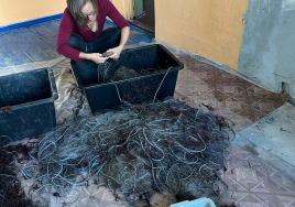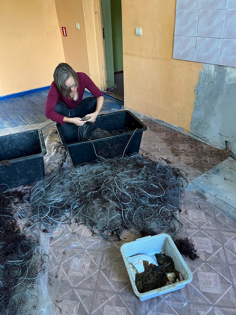 Līdzdalīgais novērojums. Prof. Aistara izņem zivis no tīkla Autors: Ilze Arkliņa