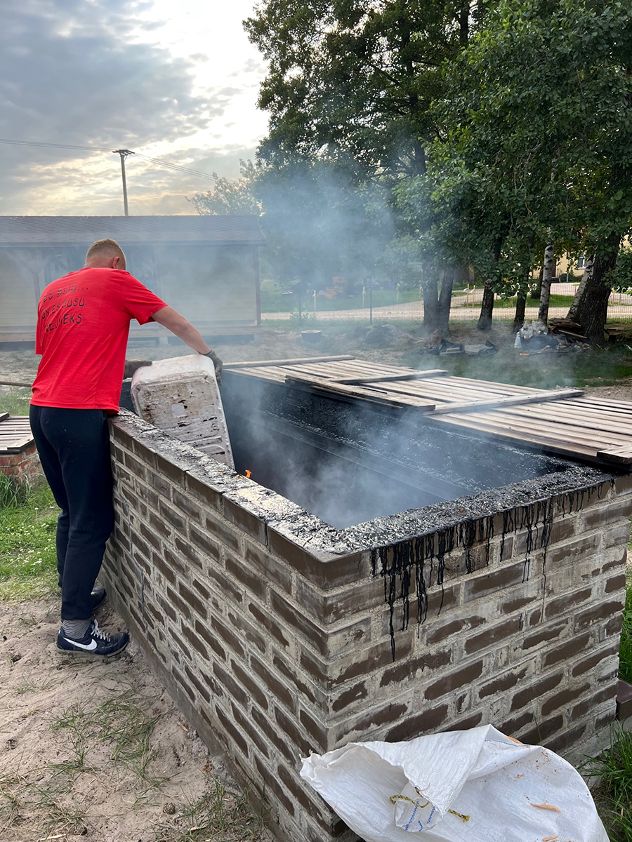 Zvejnieks Oskars kūpina butes Autors: Ilze Arkliņa