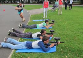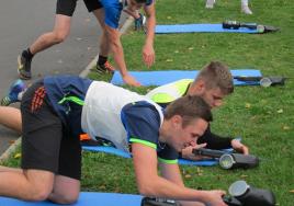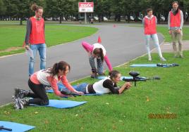 Sporta diena Rīgas Stradiņa universitātes pirmā kursa studentiem Uzvaras parkā 2015. gada 25. septembrī.