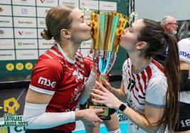 RSU volejbols Latvijas kausa finālos: dāmām – atkārtots triumfs, vīriem – cīņa piecos setos