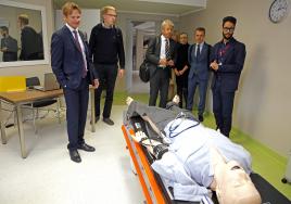 Viesi no Austrumbavārijas Tehniskās augstskolas apskata simulāciju iekārtas RSU Medicīnas izglītības tehnoloģiju centrā