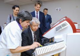 Viesi no Austrumbavārijas Tehniskās augstskolas apskata simulāciju iekārtas RSU Zobārstniecības fakultātes pirmsklīnisko mācību telpās