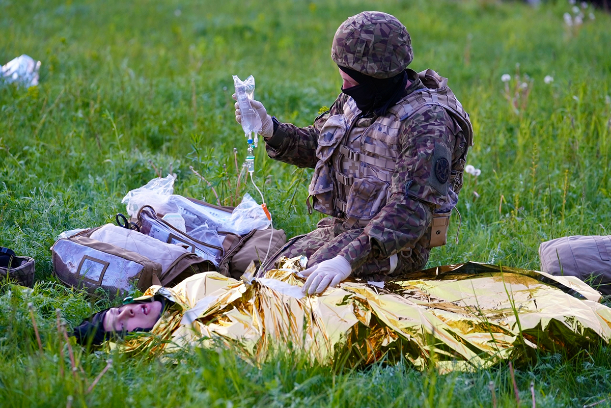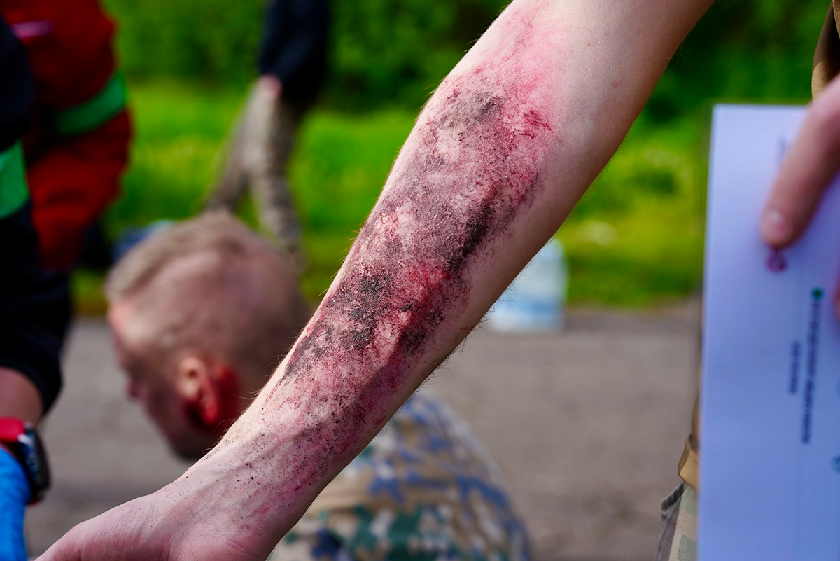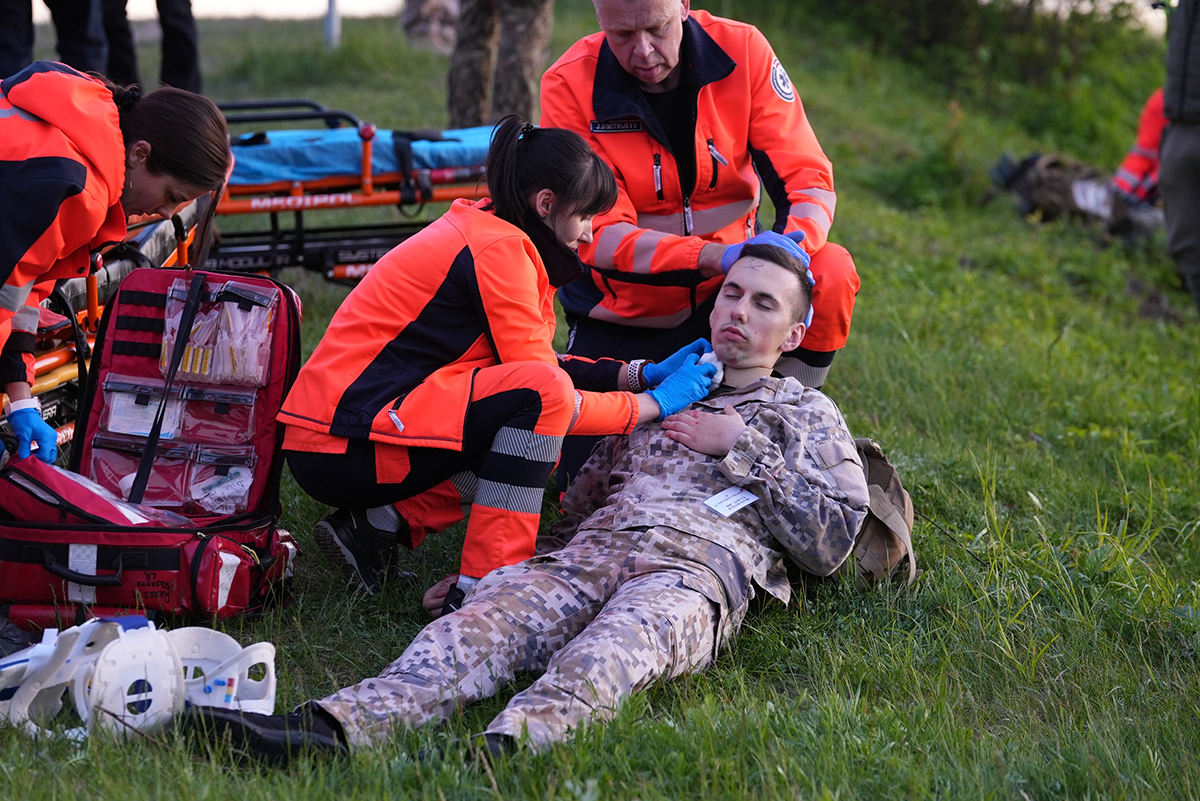 Civilmilitārās medicīnas mācības "Panaceja 2025". Visas traumas un ievainojumi ir imitēti ar medicīnisku mulāžu palīdzību