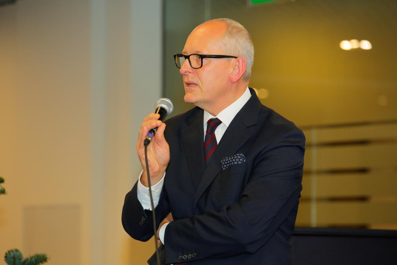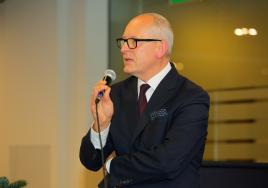 Rektors prof. Aigars Pētersons uzrunā portāla skalak.rsu.lv atklāšanas svētku dalībniekus