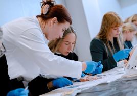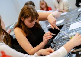 Studenti apgūst starpenes šūšanas tehniku kopā ar dr. Zani Rostoku