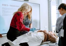 Studenti apgūst transabdominālās ultrasonogrāfijas iemaņas kopā ar dr. Elizabeti Ārgali