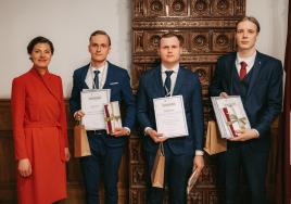 Tiesībsarga vietniece Ineta Piļāne kopā ar komandas "Trīs musketieri" kapteini Robertu Špigunu un dalībniekiem Edvardu Gabrielu Spilu un Mārtiņu Puķīti Autors: Krists LuhaersTiesības