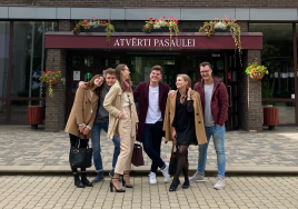 Ar draugiem trešā kursa pirmajā septembrī (2020. gads). No kreisās: Linda Siliņa, Mārtiņš Čudars, Marika Petrovska, Juris Jurāns, Frančeska Tīna Kursīte, Dāvids Puišelis