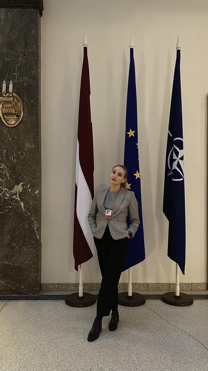Frančeska Tīna Kursīte 2021. gadā absolvēja RSU bakalaura studiju programmu Starptautiskās attiecības – Eiropas studijas un nu jau vairāk nekā trīs mēnešus strādā Ārlietu ministra birojā. Paralēli darbam Frančeska RSU maģistrantūrā studē starptautiskās attiecības un diplomātiju.