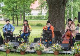 Mūziķu grupa "Ducele" uzstājas Jāņu ielīgošanā RSU Iedvesmas parkā 2022. gada 21. jūnijā