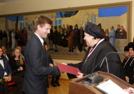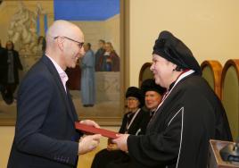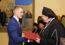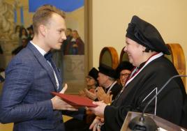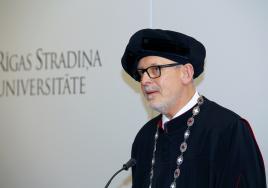 RSU rektors prof. Aigars Pētersons sveic absolventus Doktorantūras nodaļas izlaidumā