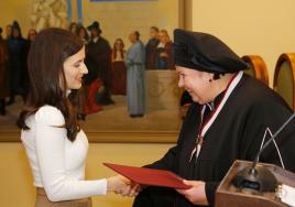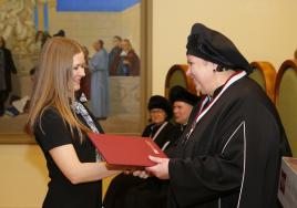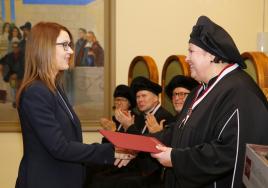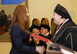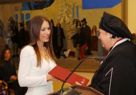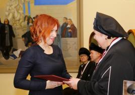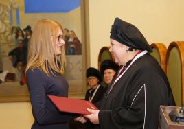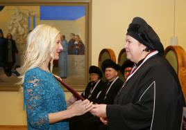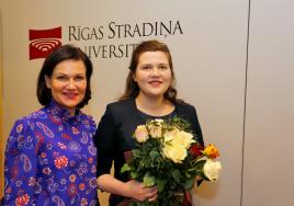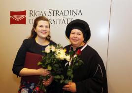 Veselības ministre Ilze Viņķele sveic absolventus Doktorantūras nodaļas izlaidumā