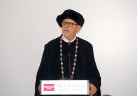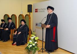 RSU rektors prof. Aigars Pētersons uzrunā absolventus Doktorantūras nodaļas izlaidumā