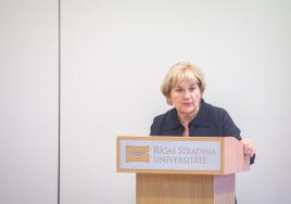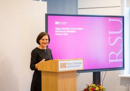 RSU Pediatrijas katedras vadītāja prof. Dace Gardovska uzrunā klātesošos