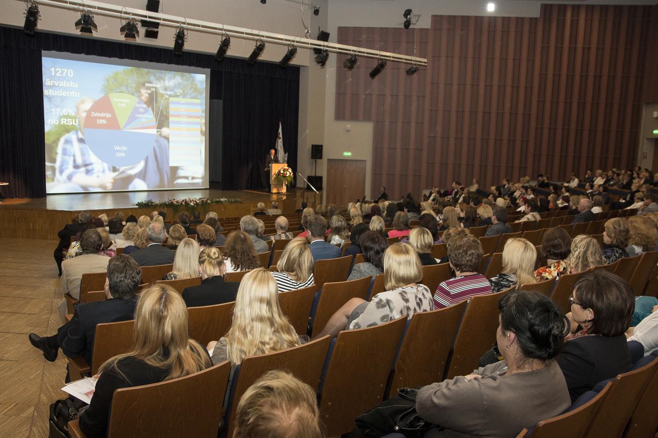 Sanāksmē tika sveikti RSU Gada balvas ieguvēji: Gada akadēmiskā struktūrvienība – Iekšķīgo slimību katedra, Gada zinātniskā struktūrvienība – A. Kirhenšteina Mikrobioloģijas un virusoloģijas institūts, Gada administratīvā struktūrvienība – Finanšu departaments. Balvu par mūža ieguldījumu saņēma bijušais RSU Fizikas katedras profesors Uldis Teibe. Studējošo pašpārvalde pasniedza balvu studentiem draudzīgākajai struktūrvienībai – Infrastruktūras departamenta Apsaimniekošanas un ēku uzturēšanas nodaļa (balva tika pasniegta nodaļas vadītājai Lailai Skrodelei).
