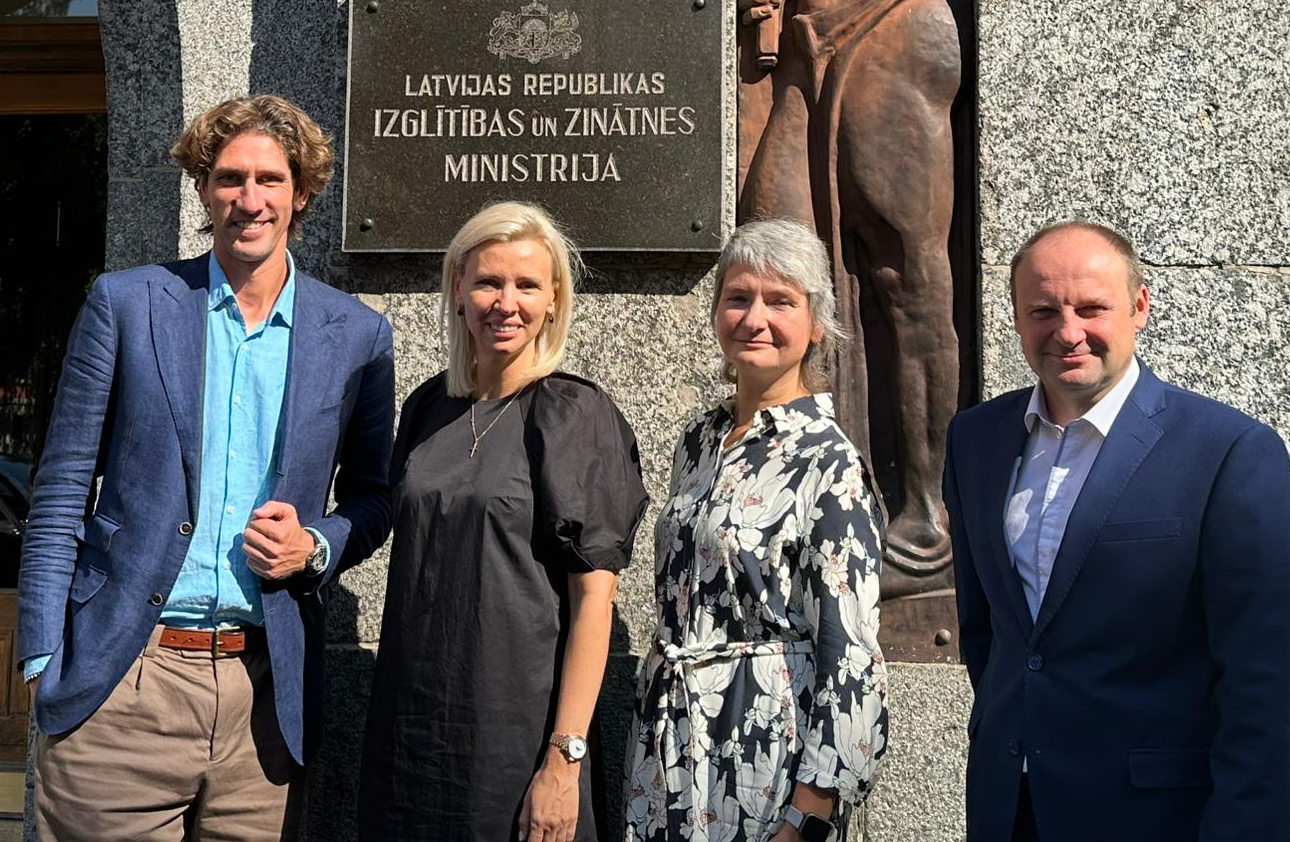 2024. gada 5. septembrī projekta vadošie pētnieki asoc. prof. Dr. med. Signe Tomsone (otrā no labās), asoc. prof. Dr. paed. Signe Luika un prof. Dr. paed. Jānis Žīdens tikās ar Izglītības un zinātnes ministrijas Sporta departamenta direktoru Aleksandru Samoilovu (no kreisās).