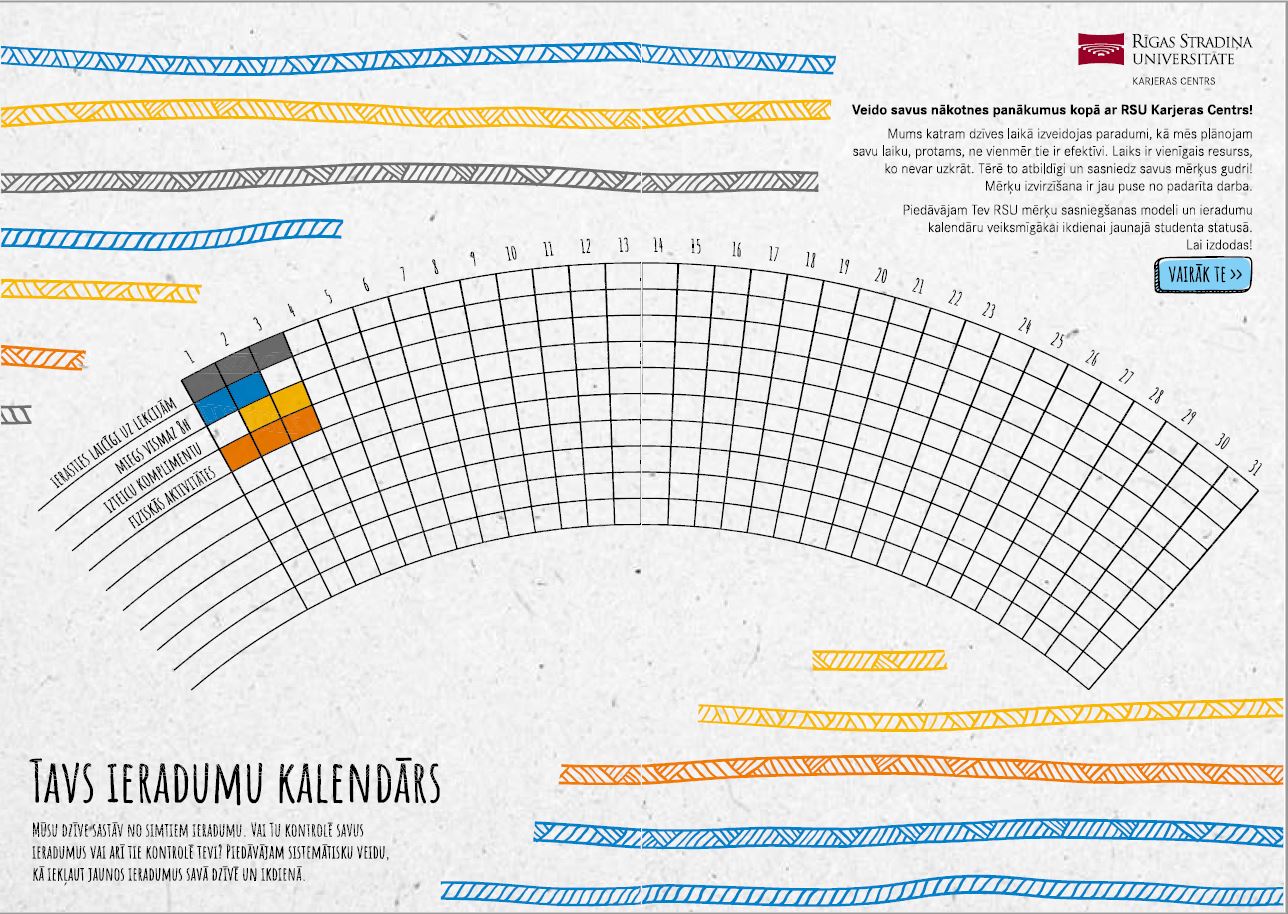 RSU Karjeras karjeras un labbūtības centrs ir izstrādājis materiālus, kurus vari izmantot ikdienā savai izaugsmei un veidotu sev vēlamus ieradumus un sasniegtu nospraustos mērķus.
