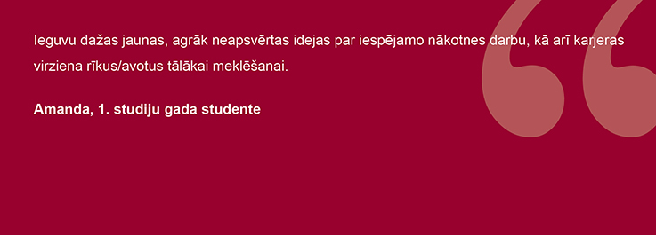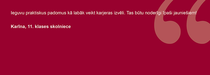 - Darbināt abas tavas smadzeņu puslodes – gan iztēli, gan konstruktīvo domāšanu, lai tu pats spētu atpazīt un noformulēt nākamos soļus pretī kādam no sevis izvēlētajiem karjeras virzieniem