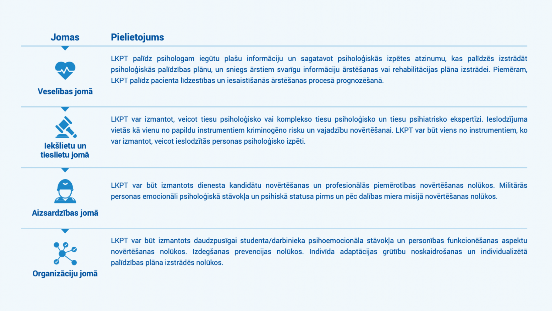 LKPT palīdz psihologam kvalitatīvāk sagatavot psiholoģiskās izpētes atzinumu (slēdzienu), kā rezultātā iespējams produktīvāk izstrādāt kvalitatīvu klientu vai pacientu psiholoģiskās palīdzības, ārstēšanas un rehabilitācijas programmu.