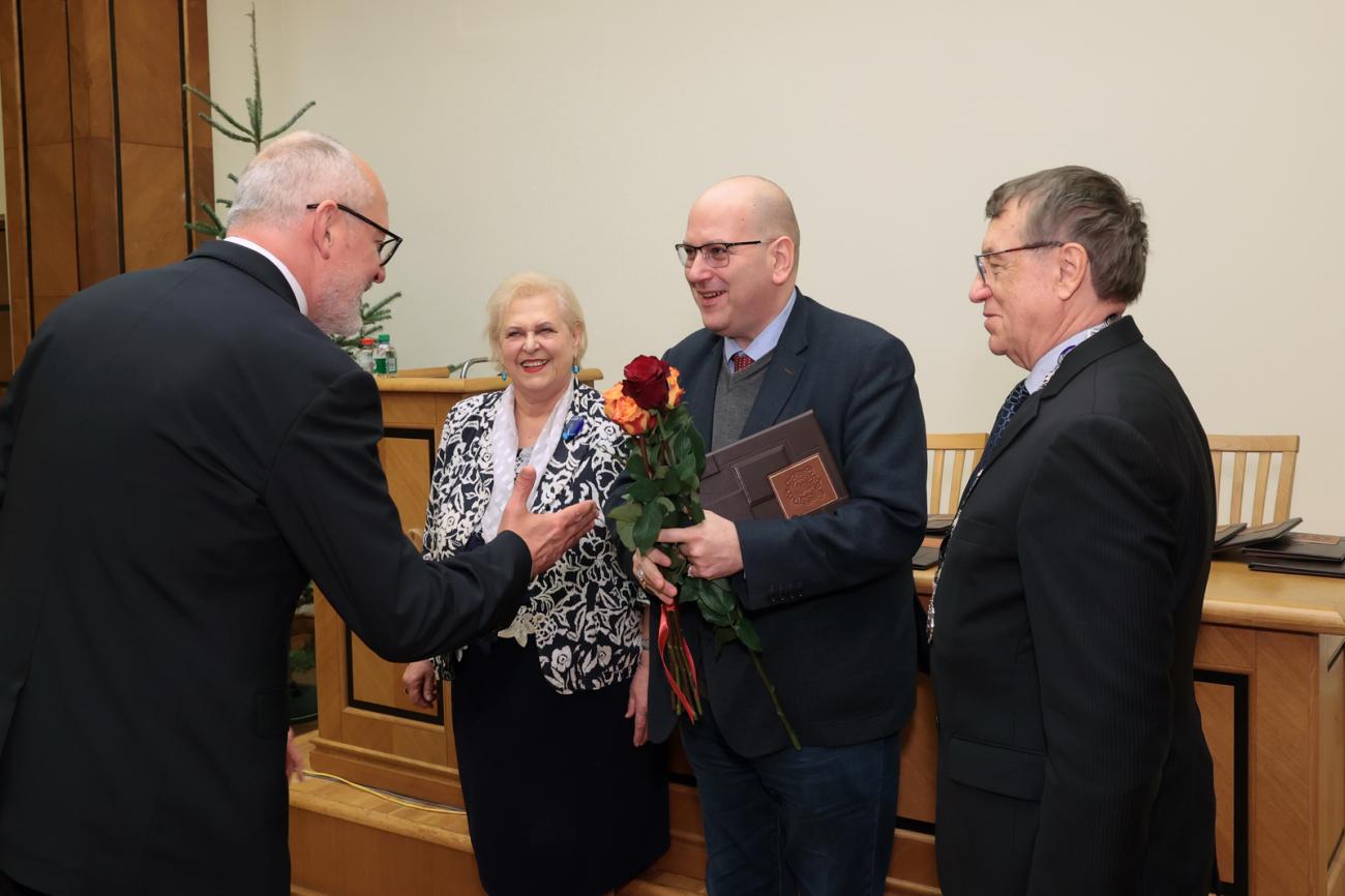 Pasniegti diplomi jaunajiem LZA locekļiem, kuru vidū ir mūsu kolēģi