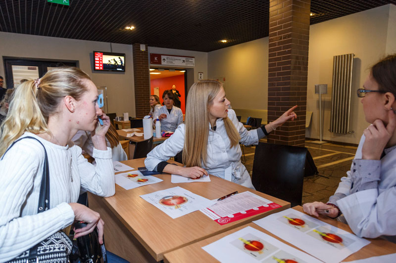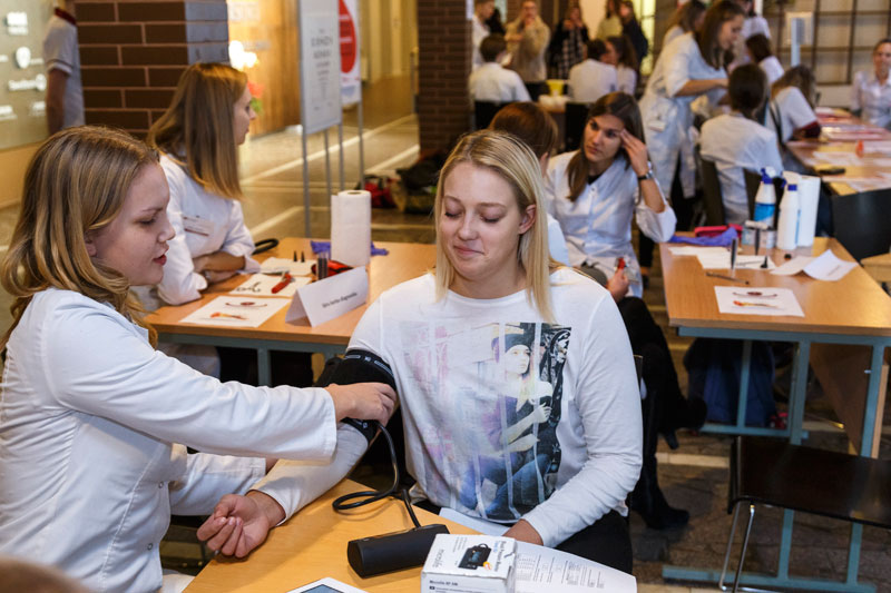 | 2016. gada 10. novembrī Rīgas Stradiņa universitātē jau otro reizi šajā gadā notika Veselības diena. Tajā RSU studenti un darbinieki ziedoja asinis un pārbaudīja veselību pie topošajiem mediķiem. |
