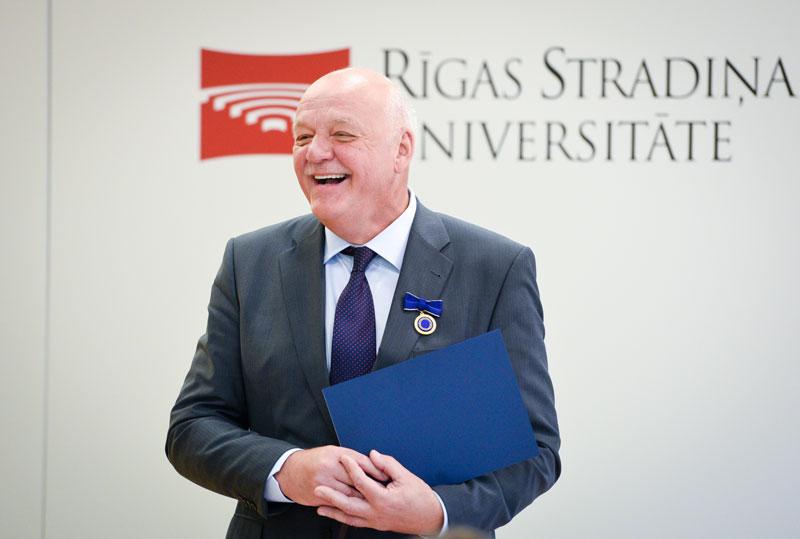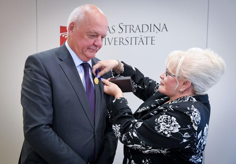 Apbalvojums prof. Jānim Gardovskim tika pasniegts par ilggadēju un neatslābstošu darbu mūsdienīgas medicīnas izglītības veidošanā, rūpēm par studentu un docētāju zināšanu kvalitāti, kā arī izciliem panākumiem augstskolas starptautiskās atpazīstamības un konkurētspējas celšanā.