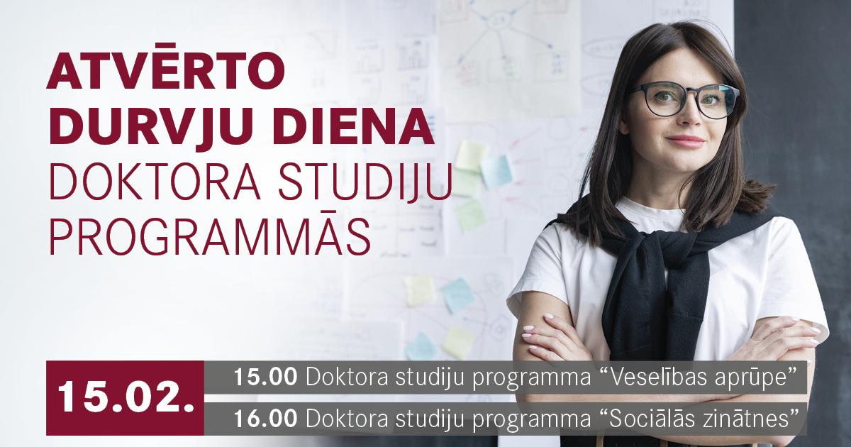 Rīgas Stradiņa universitāte aicina doktora studiju programmu reflektantus piedalīties Atvērto durvju dienā, kas notiks tiešsaistē ceturtdien, 15. februārī, plkst 15.00, piedāvājot padziļinātu ieskatu universitātes studiju programmās un pētniecībā.