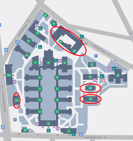 Korpuss nr. Platība, m2 Būvniecības gads 24 565 1890 25 793 1890 14 540 1869 20 ~2000 1937