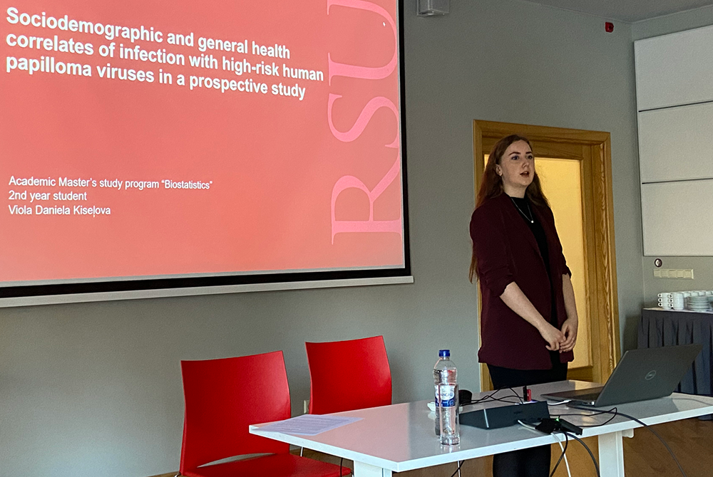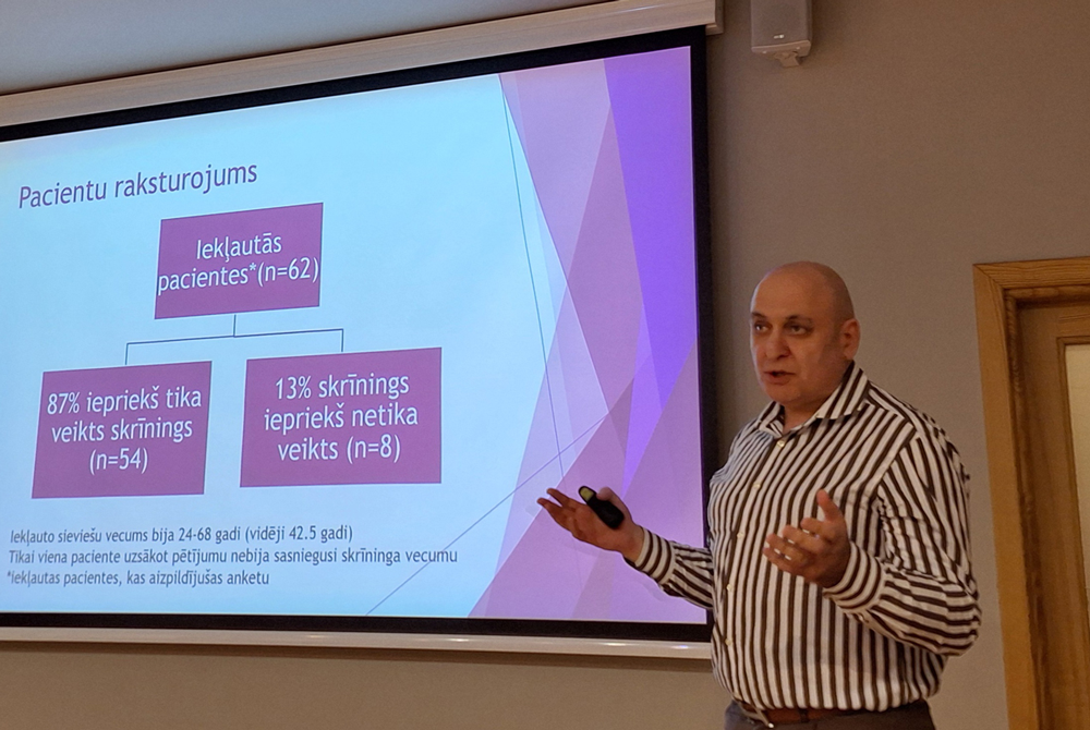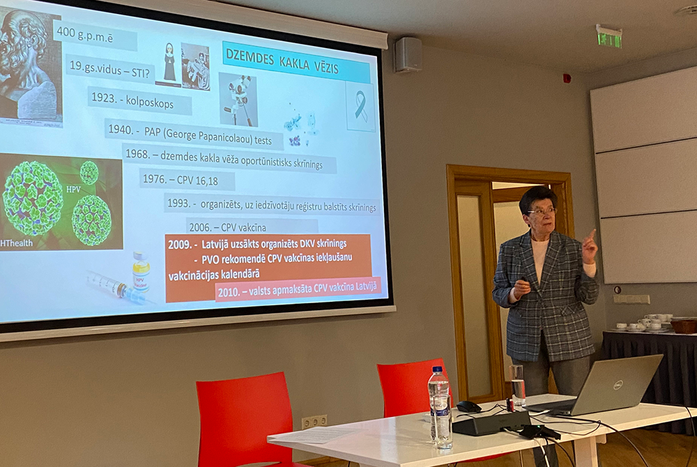 2024. gada 25. oktobrī notika seminārs Cilvēka papilomas vīrusa infekcija un dzemdes kakla vēzis (LZP projekts 2021/1-0484). Tā programmā ietilpa pētniecības sesija ar RSU pētniekiem un atvērtā sesija ar pacientiem, kurā tika apspriesta HPV testu nozīme, skrīninga pieejas un vakcīnu loma. Pasākuma pētniecības sesija notika angļu valodā, savukārt atvērtā sesija – latviešu valodā.