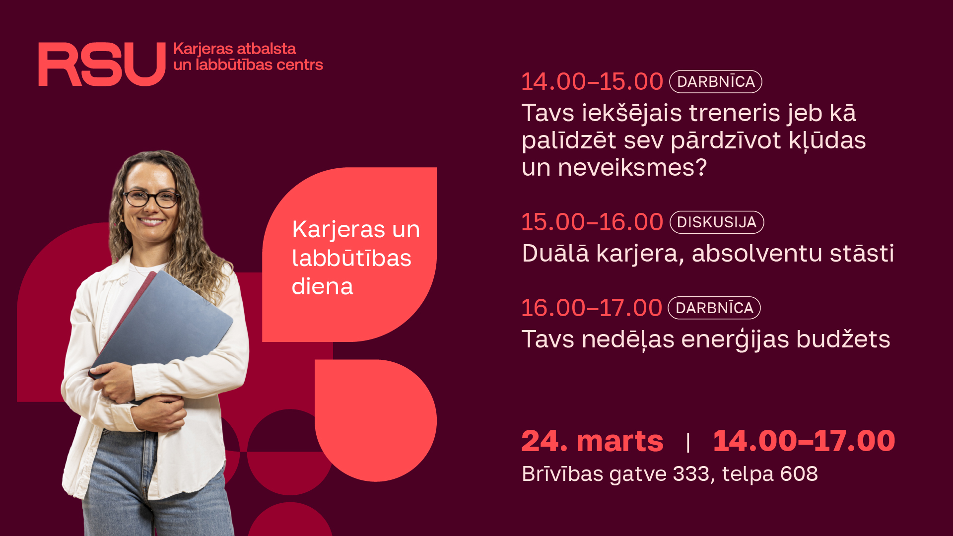 RSU Karjeras atbalsta un labbūtības centrs aicina interesentus uz Karjeras un labbūtības dienu!